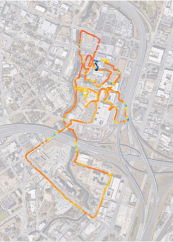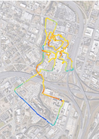 The more passes I take in a location, the more accurate the results will be. This is not a bad amount of data for a half hour bike ride in a space this big, but it would be interesting to get more accurate and nuanced results in a smaller space.
